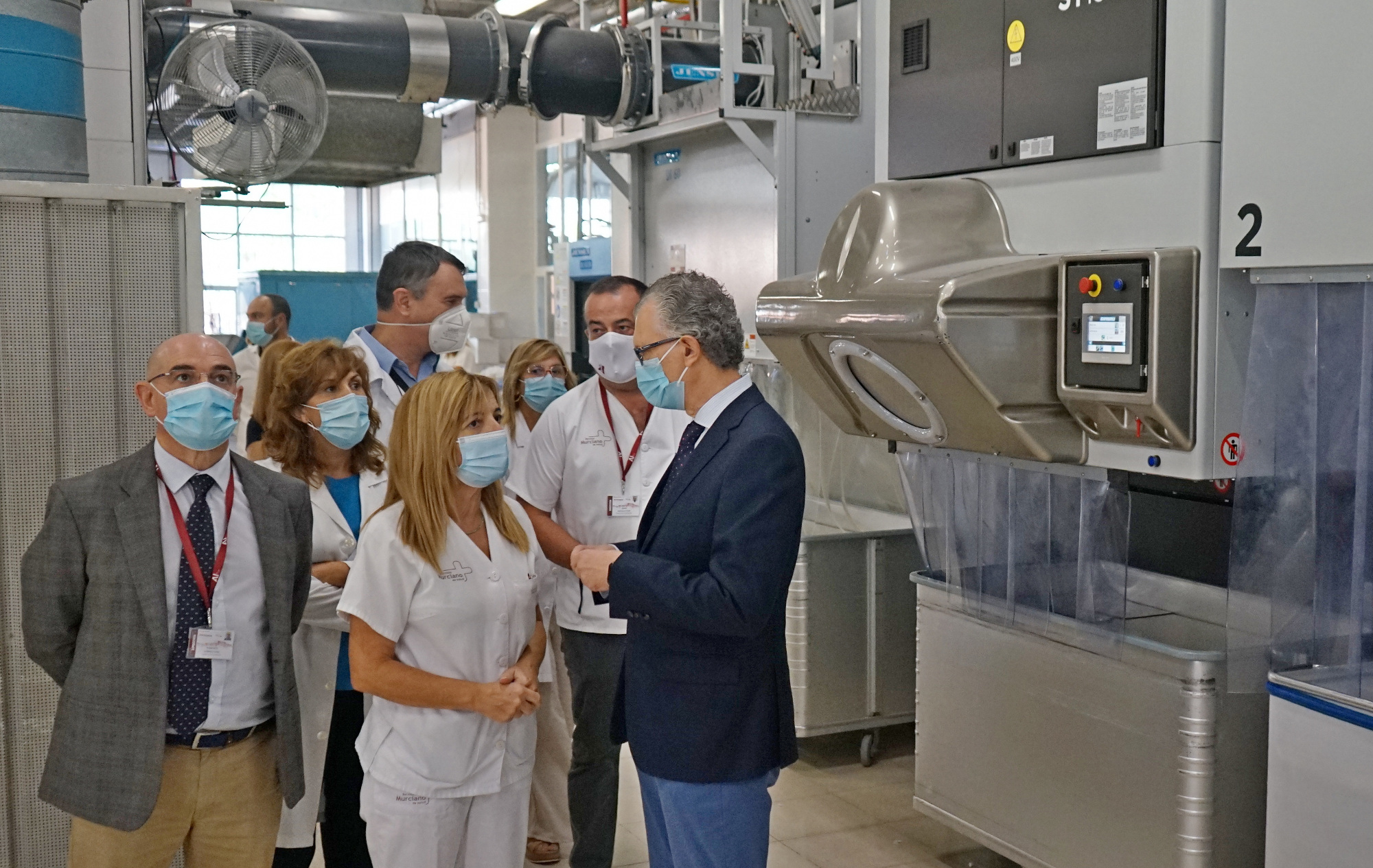 El consejero de Salud, Juan José Pedreño, visitó hoy sus instalaciones y destacó el avance cualitativo y cuantitativo de las condiciones de trabajo, además de la sostenibilidad medioambiental y la productividad de la lavandería, así como la calidad higiénico-sanitaria de las prendas para los usuarios