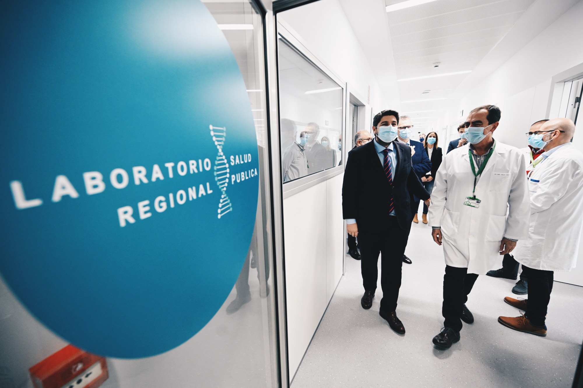 El presidente de la Comunidad, Fernando López Miras, inauguró hoy el nuevo Laboratorio Regional de Salud Pública ubicado en el edificio de servicios del Hospital Reina Sofía de Murcia, que permite aumentar un 40 por ciento la capacidad de análisis de muestras al pasar de los 10.000 actuales hasta alcanzar los 14.000. Además, supone la implantación de nuevas líneas de trabajo para la investigación.