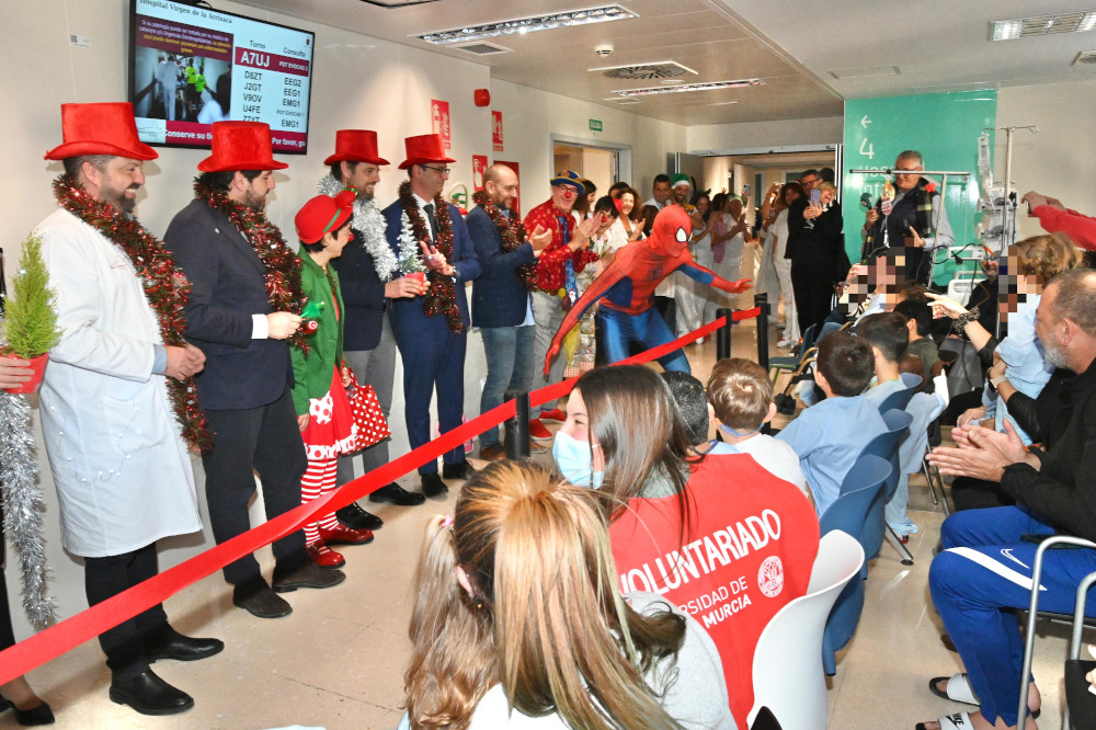 El presidente del Gobierno regional, Fernando López Miras, asistió hoy a la fiesta de Navidad organizada para los niños ingresados en el Hospital Materno-Infantil Virgen de la Arrixaca de Murcia, en la que los payasos de hospital de la asociación Pupaclown acompañaron a los menores y realizaron actividades para amenizar su estancia y celebrar la llegada de las fiestas.