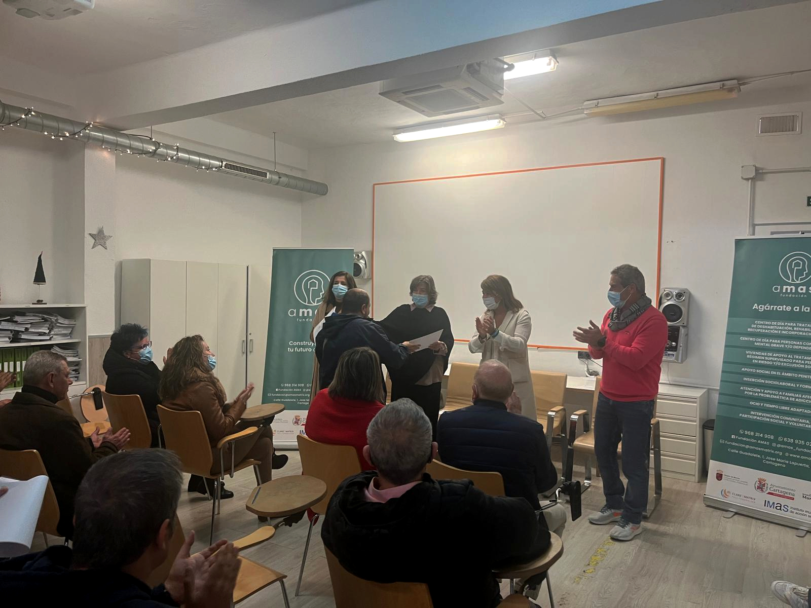 La directora general de Salud Mental del SMS, María José Lozano, ha visitado las instalaciones de esta asociación, situada en el Barrio Peral de Cartagena, con motivo de la entrega de diplomas de la finalización de la terapia modelo Matrix.