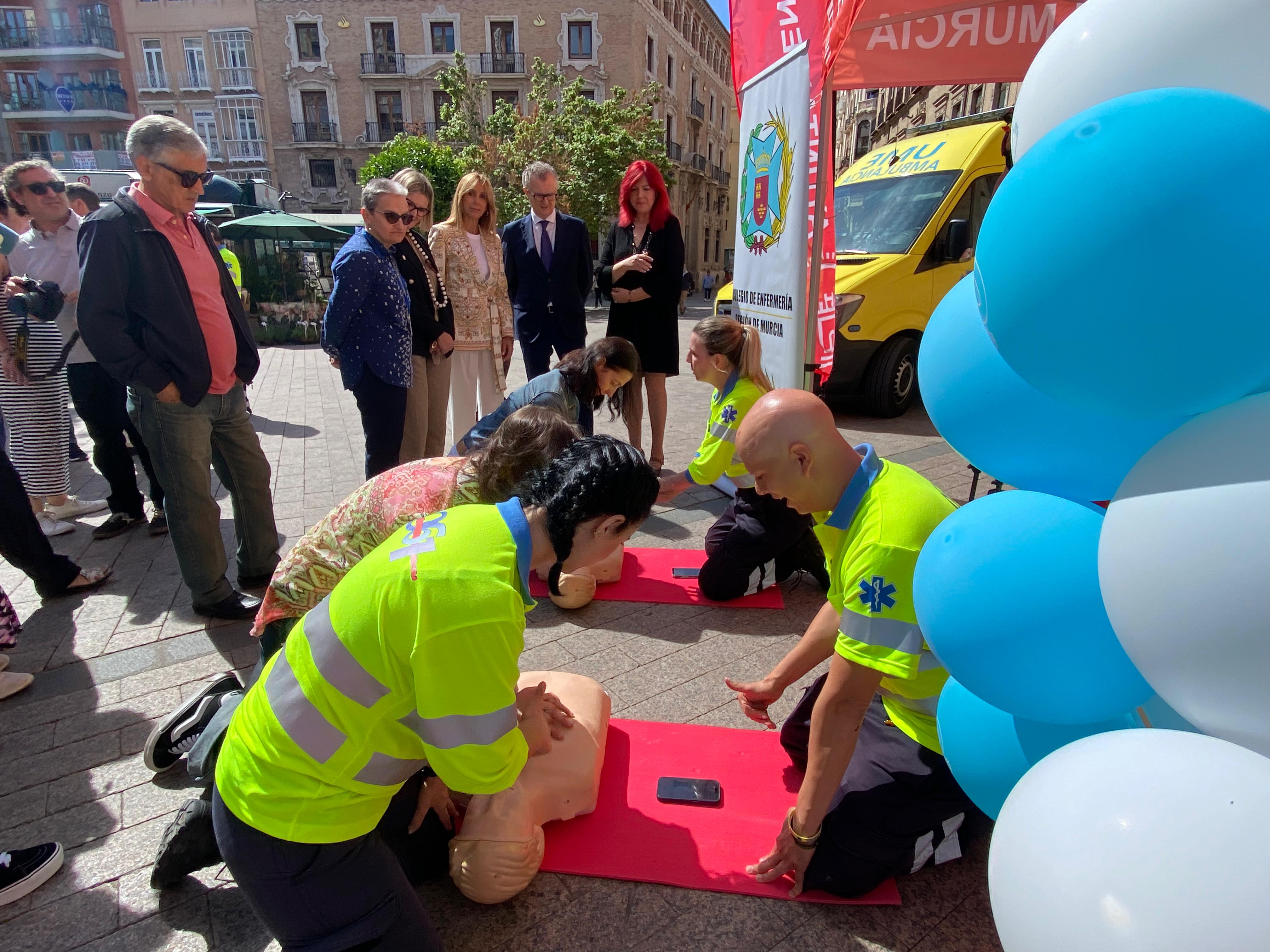 Pedreño visitó las cuatro carpas y las dos ambulancias, instaladas en la Plaza de Santo Domingo de Murcia, en las que enfermeros de distintos ámbitos ofrecerán hasta el próximo viernes información y talleres divulgativos.