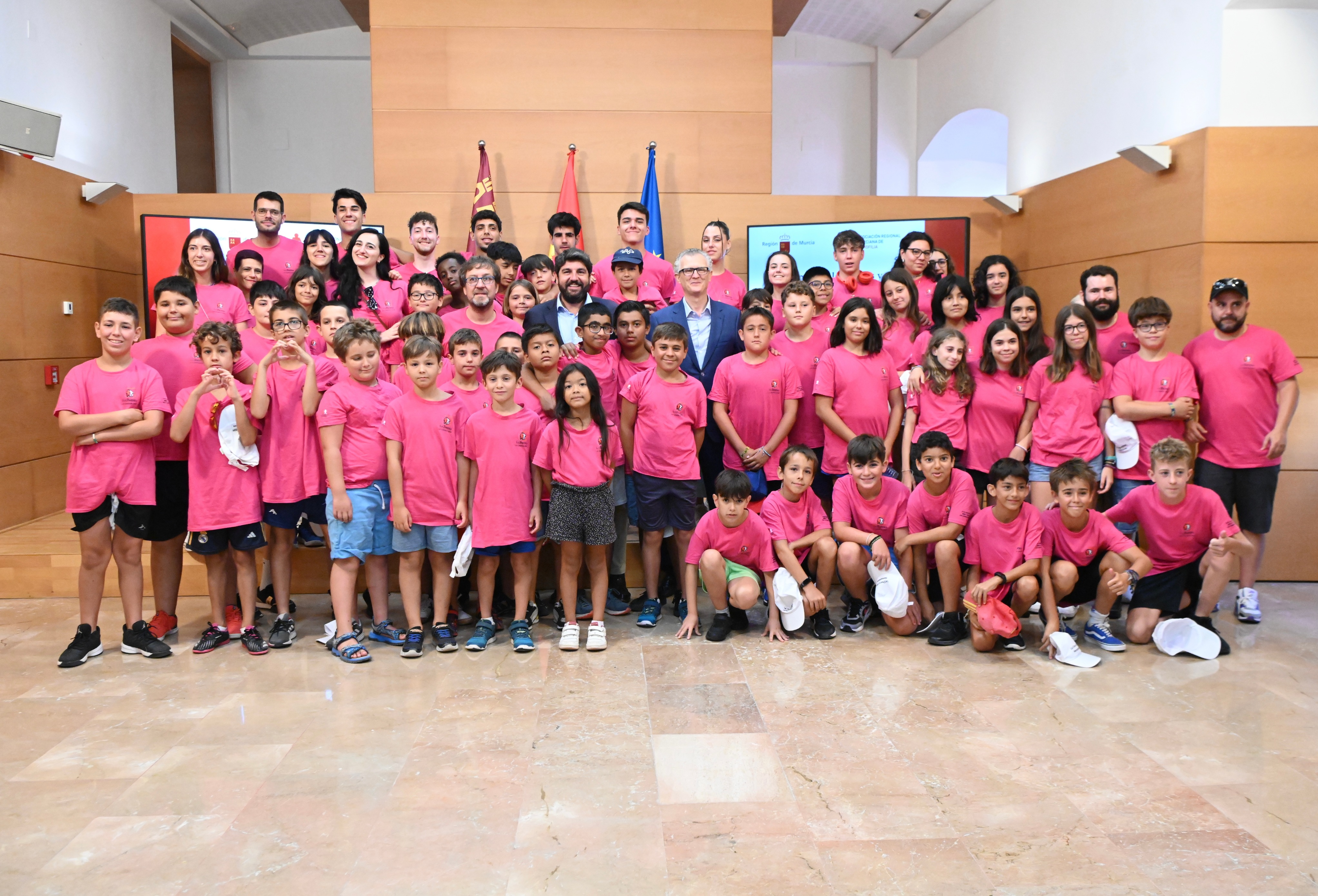 López Miras recibe al medio centenar de niños afectados de hemofilia que participan en el campamento de La Charca (Totana)