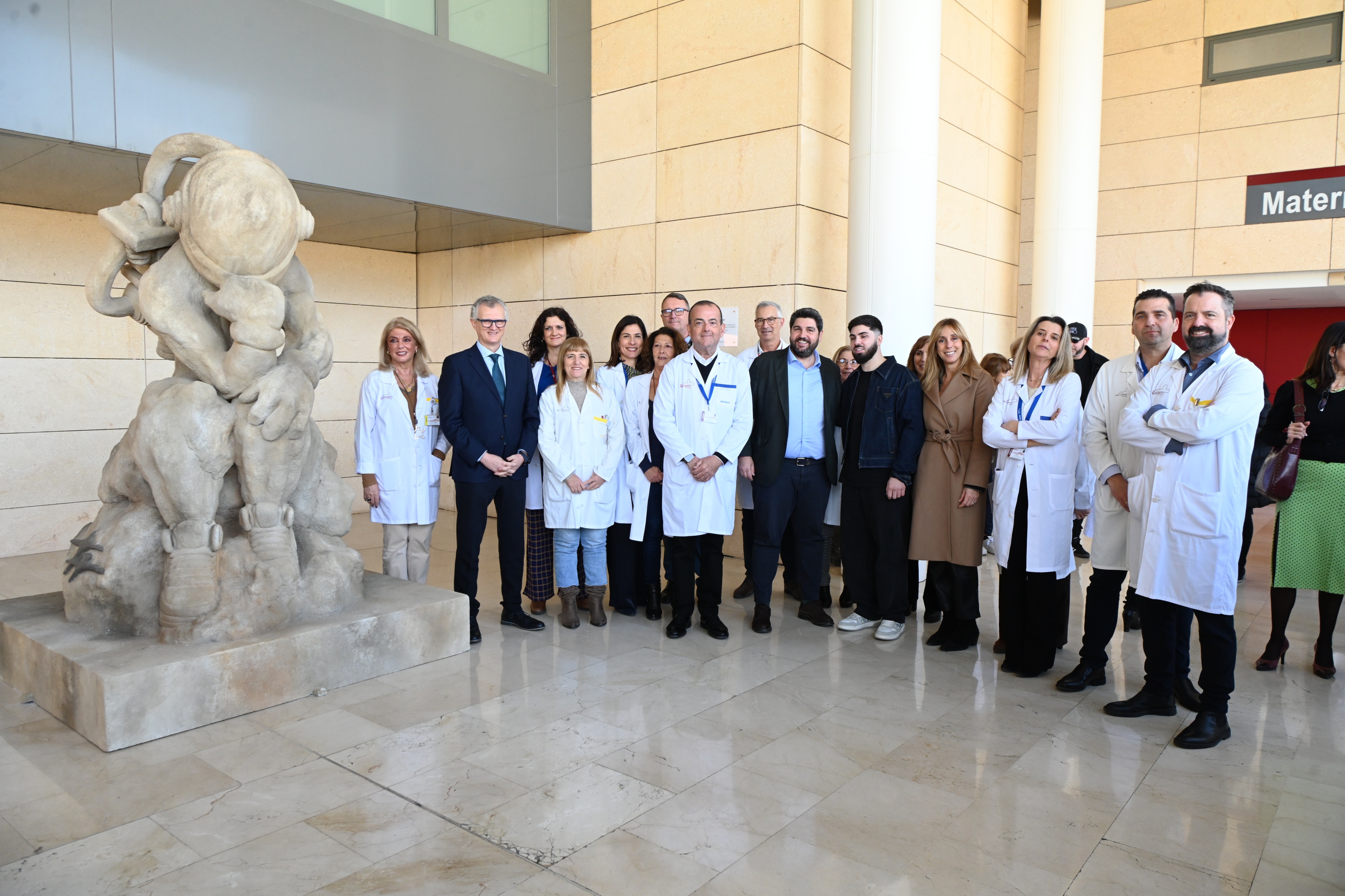 Según López Miras, la escultura es uno de los grandes hitos de este aniversario de la Arrixaca. La obra de este gran artista de la Región de Murcia podrá ser disfrutada por todos los ciudadanos que pasan por la Arrixaca y que, como el astronauta de la escultura, buscan en el hospital esperanza y futuro