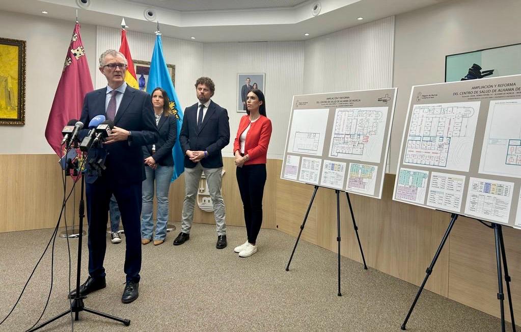 El consejero de Salud, Juan José Pedreño, junto con la alcaldesa del municipio, María Cánovas, presentó hoy el anteproyecto de ampliación y reforma del nuevo centro de salud de Alhama, que contará con 17 consultas más que el actual.