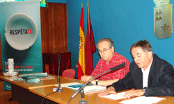 El director de Salud Pública, Francisco García Ruiz, (derecha) y el jefe de servicio de Educación para la Salud, José Joaquín Gutierrez, en un momento de la presentación de la campaña de información y publicidad que la Consejería de Sanidad ha puesto en marcha coincidiendo con la celebración el 31 de mayo del Día Mundial sin Tabaco.