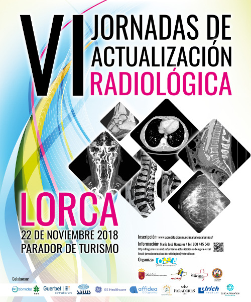 El próximo jueves, 22 de noviembre de 2018, se celebran las VI Jornadas de Actualización Radiológica de la Región de Murcia organizadas por el Servicio de Radiodiagnóstico del Hospital General Universitario Rafael Méndez de Lorca, en el salón Sinagoga del Parador Nacional de Lorca, en horario de mañana y tarde.