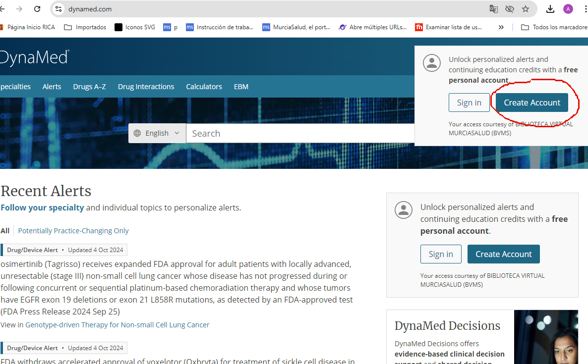 Para poder utilizar la app de Dynamed debe registrarse antes en la aplicación. Para ello, acceda a la web de Dynamed desde la Intranet, y acceda al formulario de registro.
