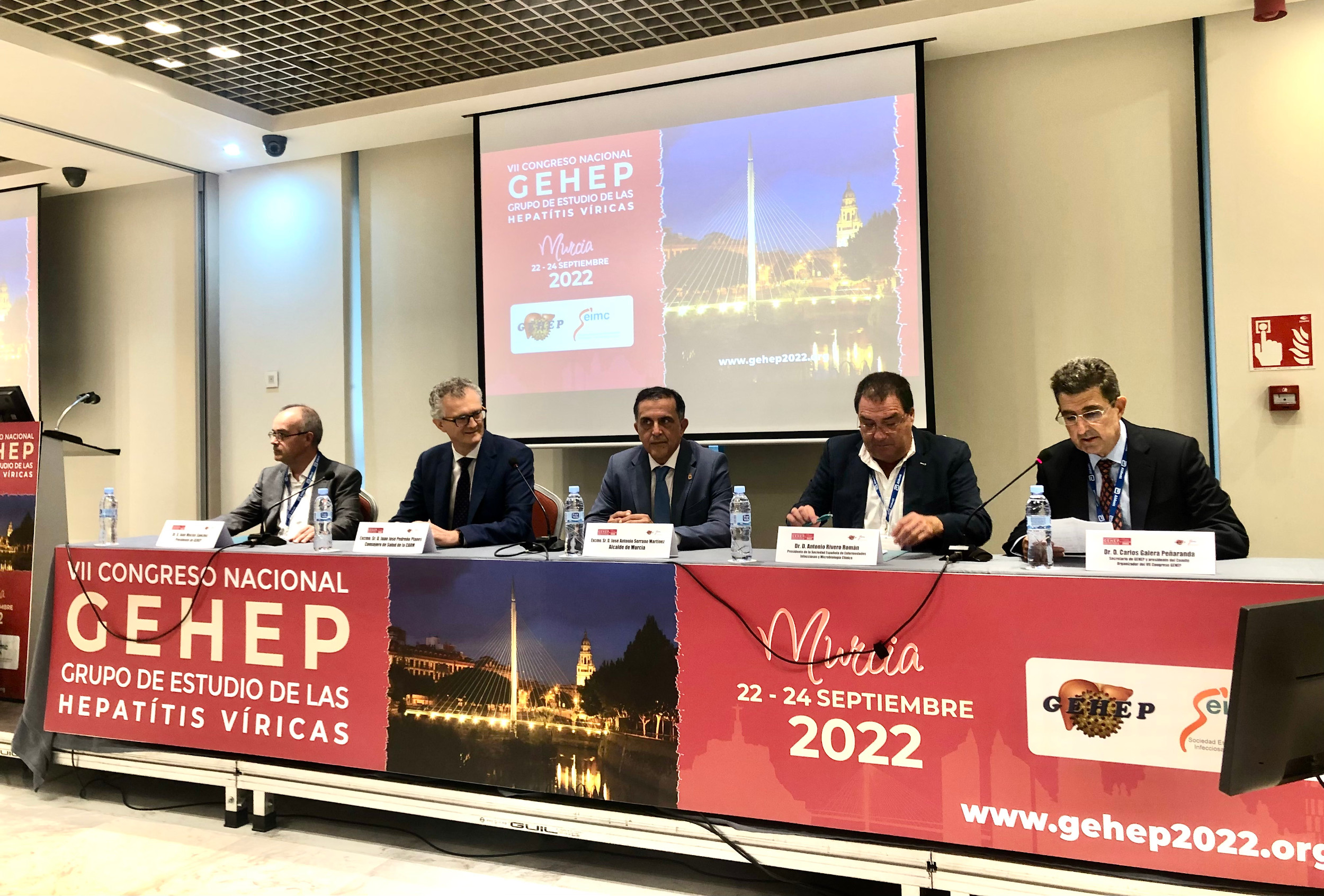 Unas 150 personas está previsto que participen en el 'VII Congreso nacional del grupo de estudios de las hepatitis víricas', que se celebra en Murcia del 22 al 24 de septiembre. El consejero de Salud, Juan José Pedreño, asistió al acto de inauguración, junto con el presidente de la Sociedad Española de Enfermedades Infecciosas y Microbiología Clínica, Antonio Rivero.