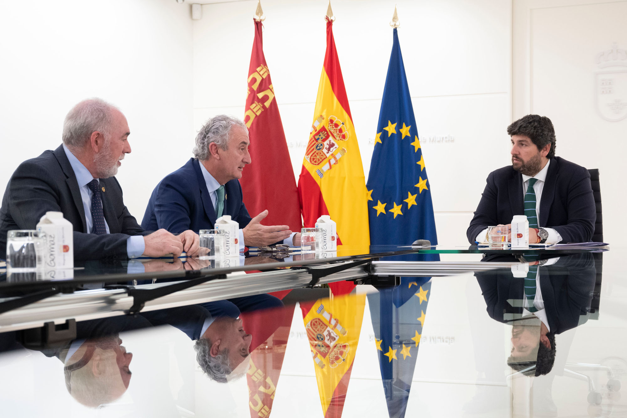 El presidente de la Comunidad, Fernando López Miras, mantuvo hoy una reunión con los presidentes del Colegio de Médicos de la Región de Murcia y la Organización Médica Colegial de España, Francisco Miralles y Tomás Cobo, tras la que se dio a conocer que la Región de Murcia será sede de una cumbre sanitaria internacional el próximo mes de octubre.