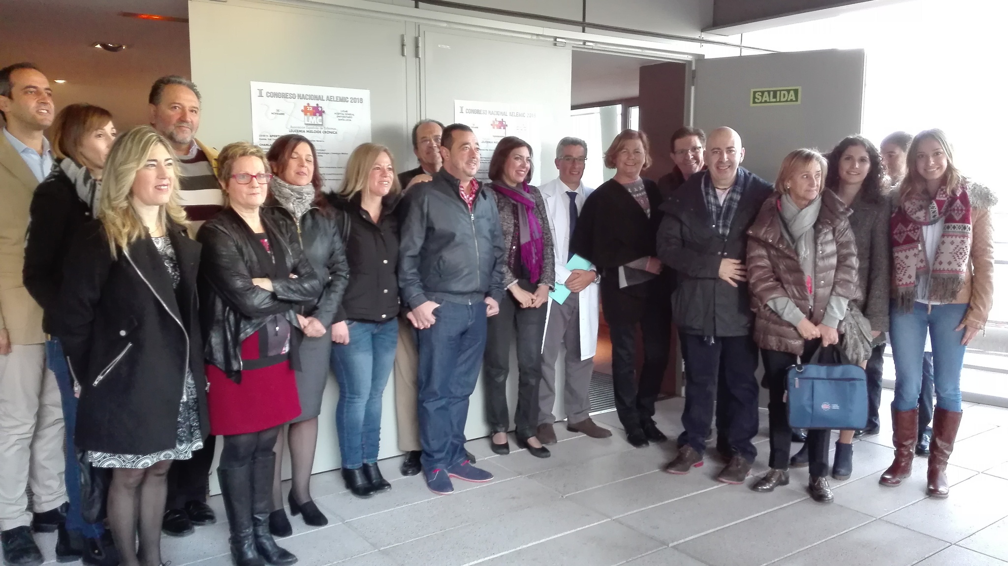 La consejera de Sanidad, Encarna Guillén (c), durante la inauguración del I Congreso Nacional de Pacientes con Leucemia Mieloide Crónica. Junto a Guillén, el director gerente del Área de Salud II-Cartagena, José Sedes (1d); y el presidente de la Asociación Española de Enfermos de Leucemia Mieloide Crónica, Mateo Miras (4d).