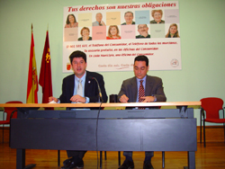 El consejero de Sanidad y Consumo, Francisco Marqués, acompañado del director general de Consumo, José Gabriel Ruiz, ha presentado hoy lunes (salón de actos de la Consejería de Sanidad, 10.30 horas) a los medios de comunicación los actos programados por su departamento con motivo de la celebración el próximo 15 de marzo del Día Europeo de los Consumidores.