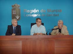 De izquierda a derecha: D. Carlos Garrido, asesor técnico de la Consejería de Educación, D. Juan Manuel Ruiz Ros, Sec. Aut. de Atención al Ciudadano, Ordenación Sanitaria y Drogodependencias y D. Fulgencio Madrid presidente de la Federación Española de Ayuda al Déficit de Atención e Hiperactividad (TDAH)