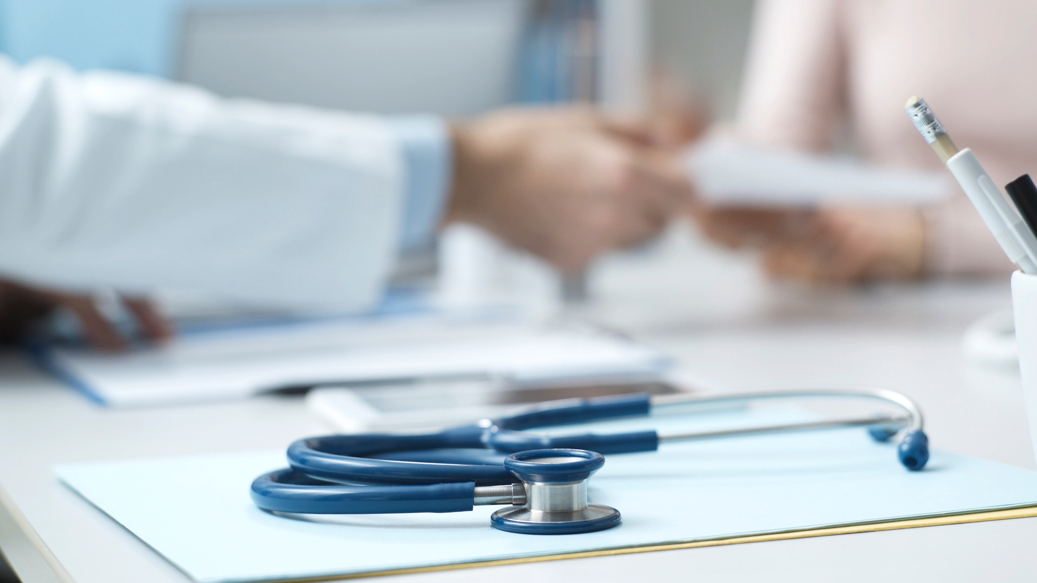 Professional doctor sitting at desk and giving a prescription to a patient, medicine and healthcare concept