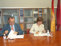De izquierda a derecha: presidente del Colegio de Diplomados en Enfermería, Diego Gutiérrez y la consejera de Sanidad y Consumo, María Ángeles Palacios.