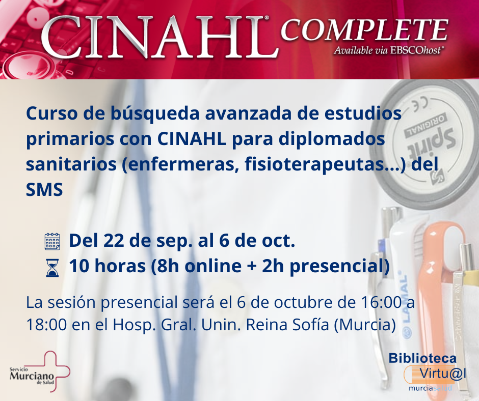 Curso de Búsqueda avanzada de estudios primarios con CINAHL para diplomados sanitarios del SMS28/08/2025