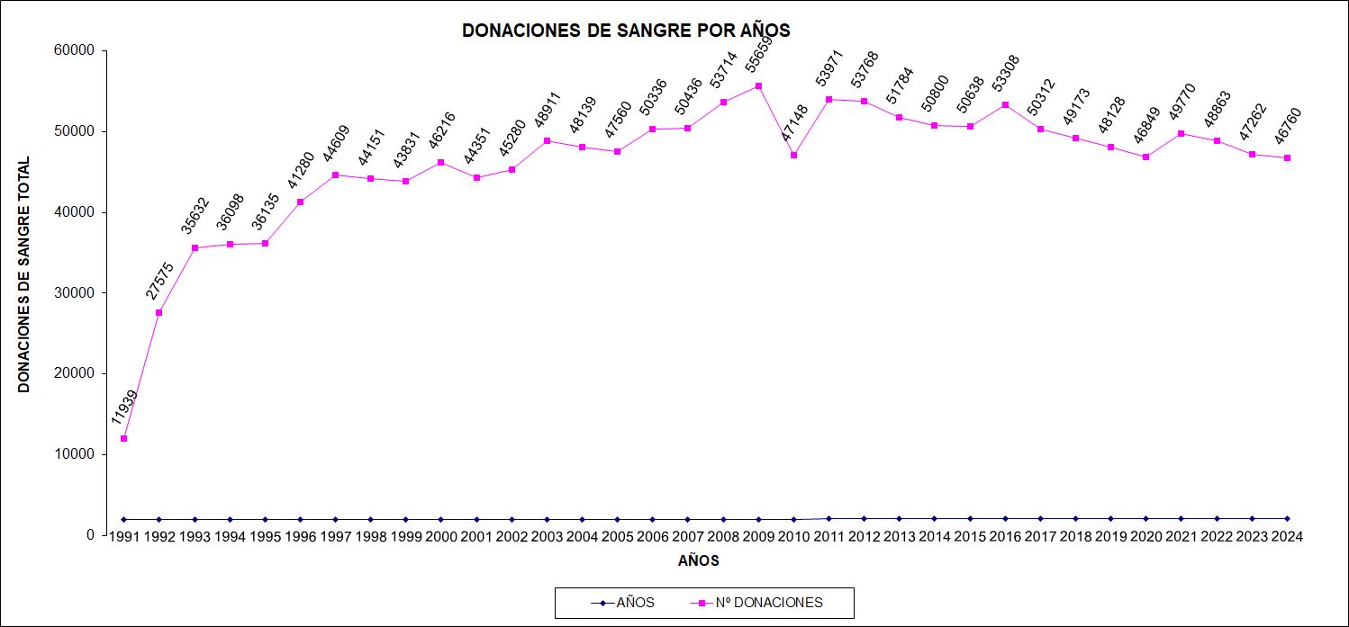 Donaciones de sangre por año