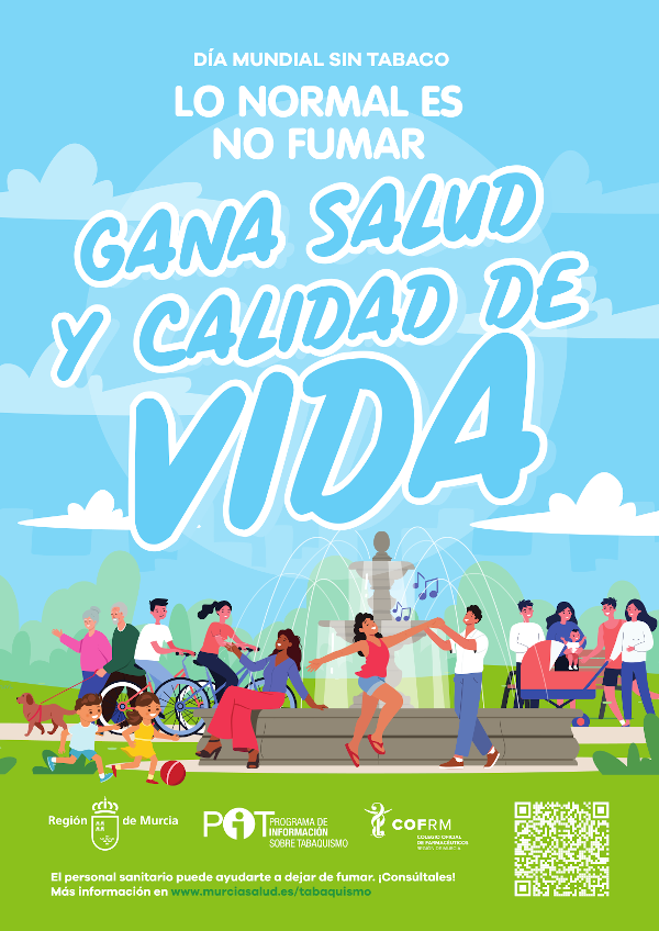 Los últimos datos disponibles de la Encuesta Europea de Salud en España de 2020 reflejan que en la Región de Murcia un 28,9% de los hombres y un 18,4% de las mujeres son fumadores diarios. La prevalencia tabáquica de la región (23,6%) se mantiene por encima de la media nacional 19,8%. Por ello, se anima a la población a dejar de fumar para mejorar su salud, su calidad de vida y el medio ambiente.