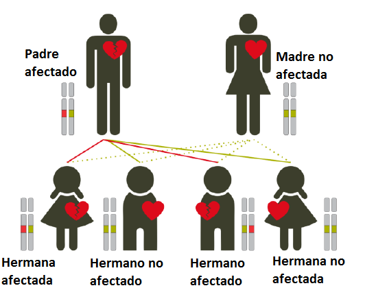 Cada persona tiene dos copias de cada gen que puede estar relacionadas con la MAVI. Una mutación en solo una de las dos copias (que provendrá del padre o de la madre) es suficiente para desarrollar la MAVI.Esto es lo que se denomina patrón de herencia autosómico dominante y el padre (o madre) que tenga la mutación tiene un 50% (1 de cada 2) de riesgo de transmitir la mutación a cada hijo. Por tanto, la posibilidad de que un niño no herede el gen mutado es también del 50%. En ocasiones, la MAVI puede tener un patrón de herencia autosómico recesivo, lo que significa que sería necesario tener una mutación en ambas copias del gen (tanto del padre como de la madre) para desarrollar la enfermedad. El tipo de patrón de herencia (autosómica dominante o recesiva) va a depender del gen y del tipo de mutación causante.
