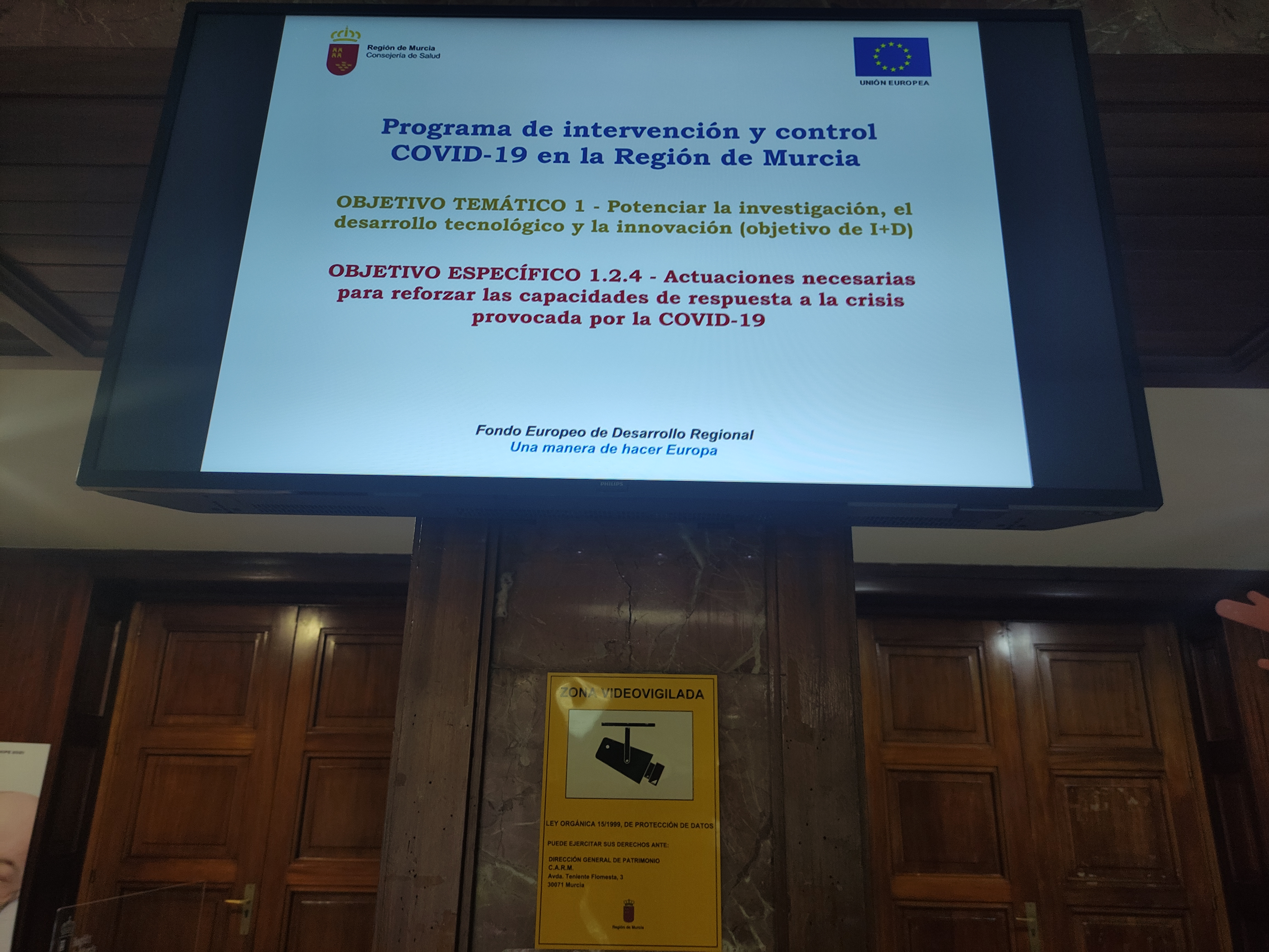 - Pantalla informativa en sede Ronda de Levante de la Consejería de Salud - Actuación "Programa de Intervención y Control COVID-19" financiada con Fondos Europeos - Imagen 1 - Imagen 2 - Imagen 3