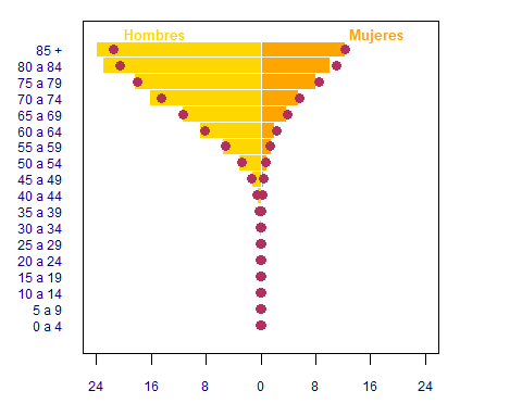 Distribución de la Cardiopatía Isquémica por edad y sexo (%)