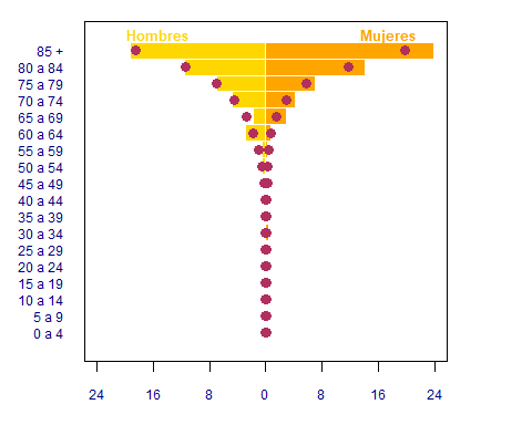 Distribución de la Insuficiencia Cardíaca por edad y sexo (%)