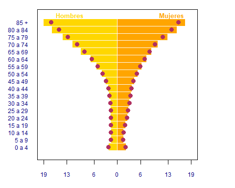 Distribución de la complejidad media por edad y sexo