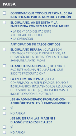 El listado de verificación propuesto por la OMS se divide en tres fases:
