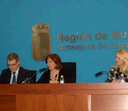 La consejera de Sanidad y Consumo, María Ángeles Palacios, junto al director general de Atención al Ciudadano, Drogodependencias y Consumo, Juan Manuel Ruiz, y la jefe de servicio de Defensa del Consumidor, Rosa Sancho, (derecha) durante la rueda de prensa donde se han dado a conocer las recomendaciones elaboradas por Consumo de cara a la Navidad