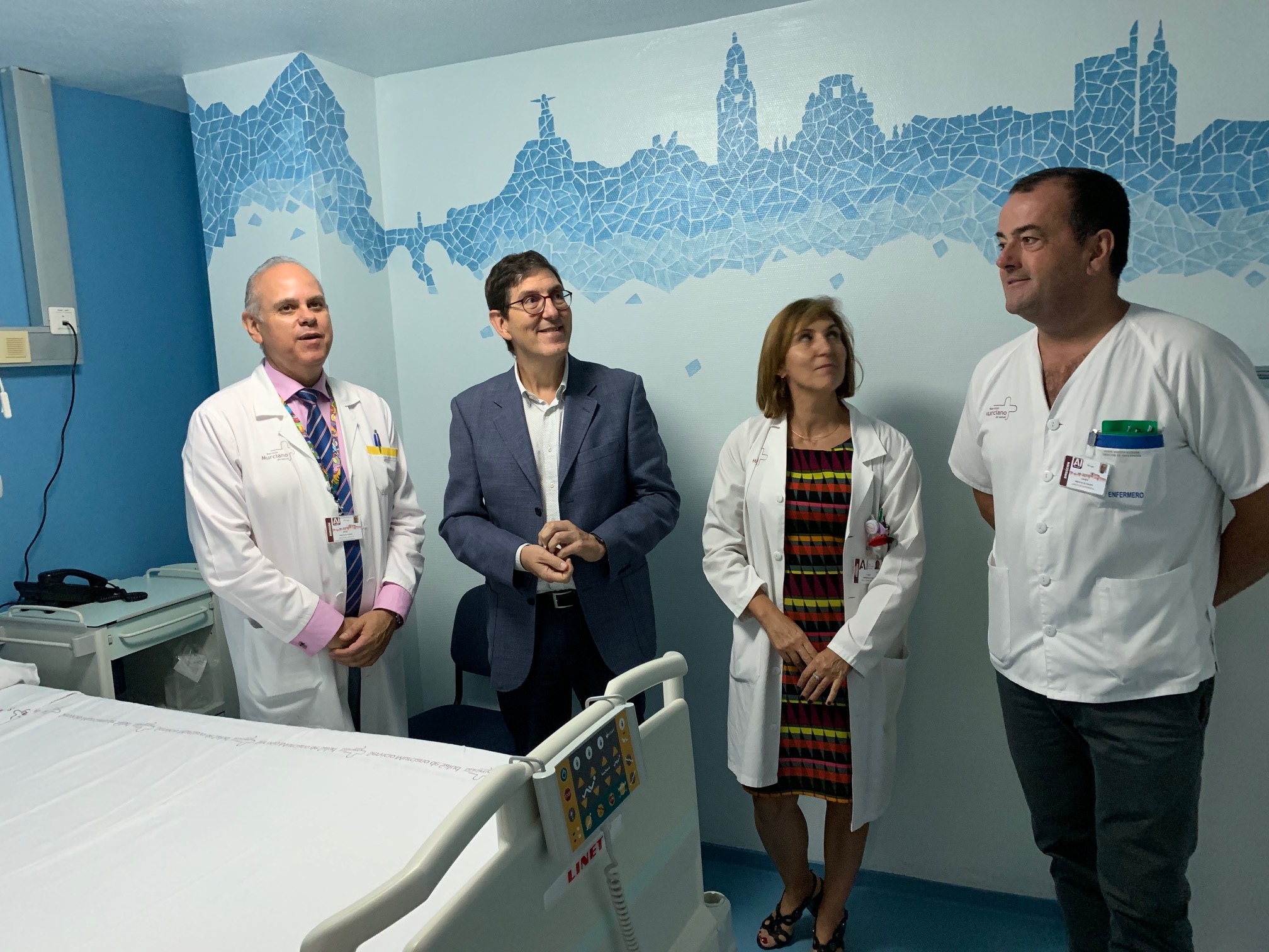 El consejero de Salud, Manuel Villegas, en la visita realizada a las salas decoradas.
