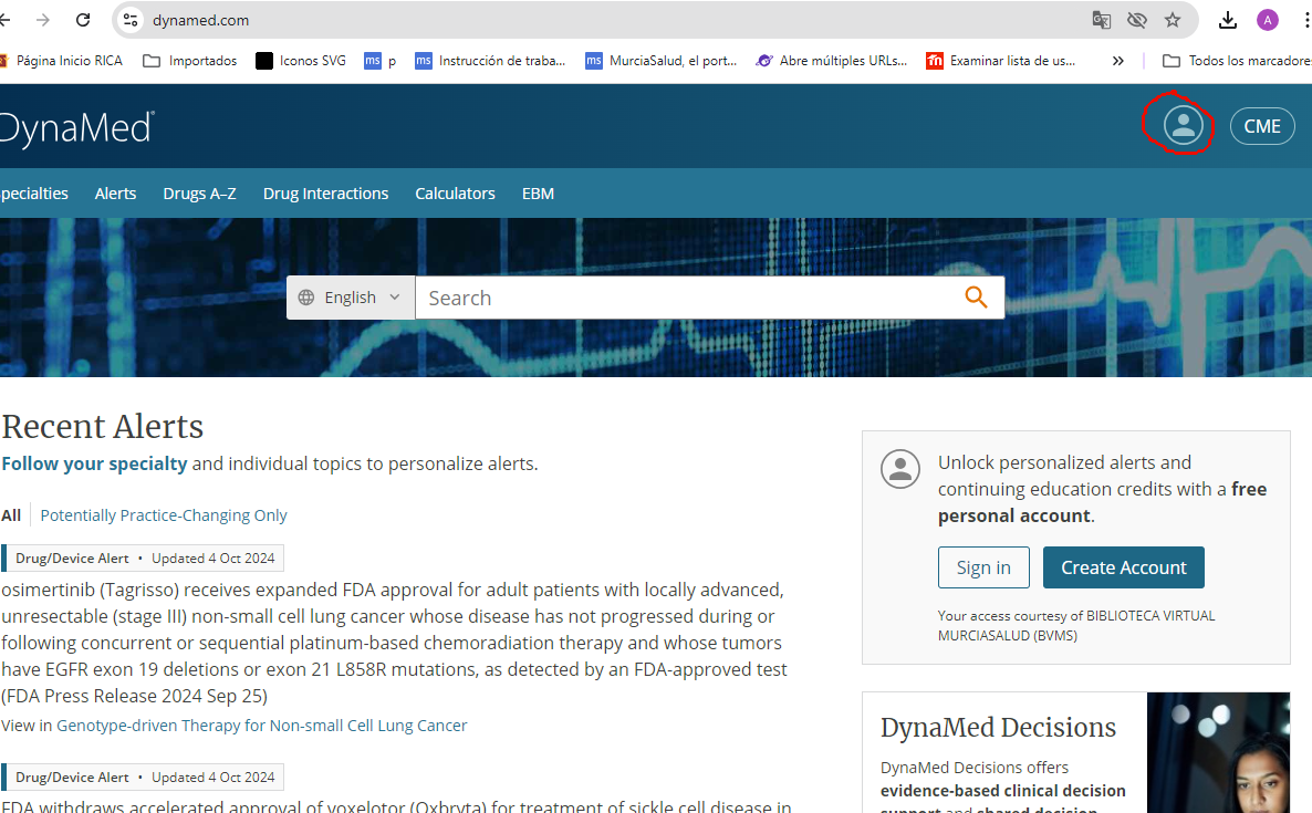 La descarga y el uso de estas apps es gratuito para los usuarios de la Biblioteca Virtual Murciasalud. El uso de las mismas requiere registrarse en las webs de los proveedores desde la Intranet del SMS.