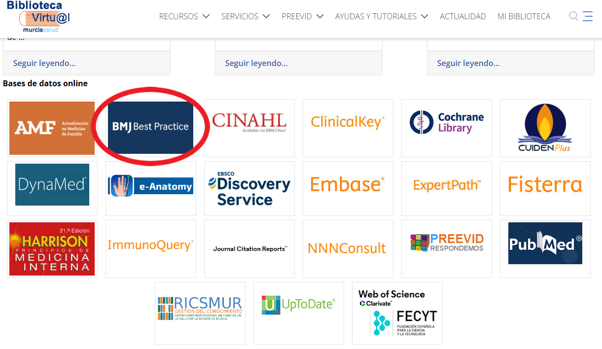 Para poder utilizar la App debe registrarse antes. Para ello, desde la Intranet, acceda a la web de BMJ Best Practice