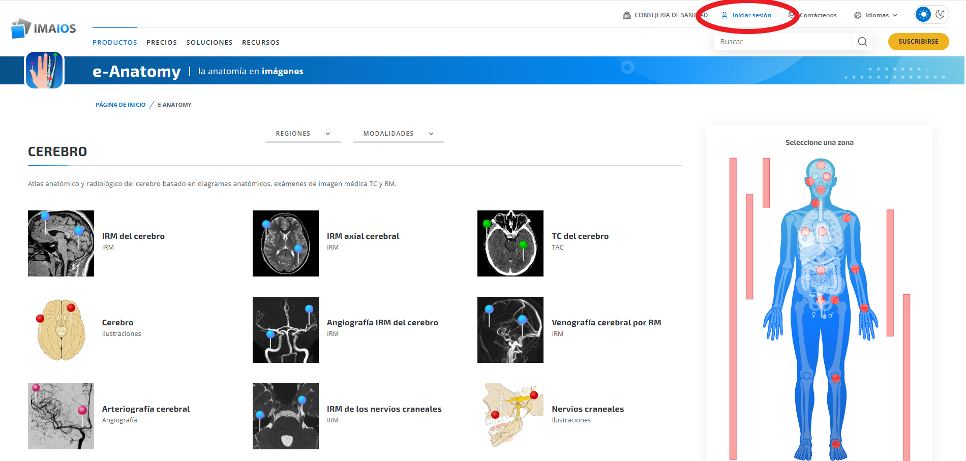 Para poder utilizar la App debe registrarse antes. Para ello, desde la Intranet, acceda a la web de e-Anatomy