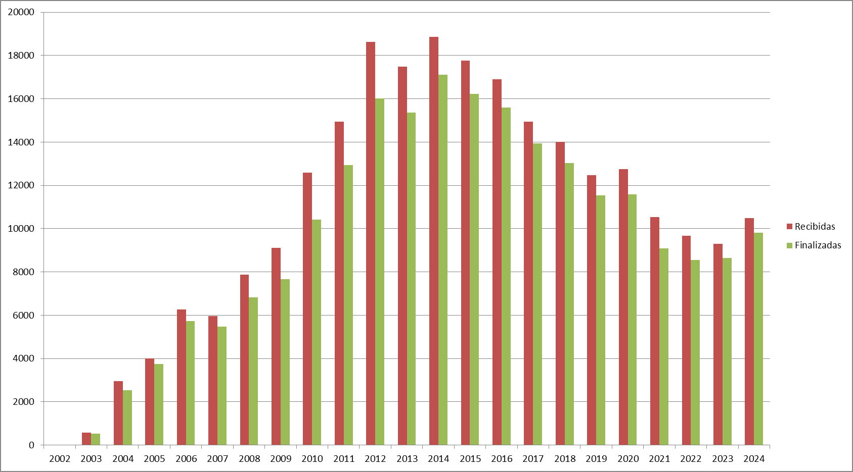 Año Recibidas Finalizadas con éxito % Finalizadas con éxito