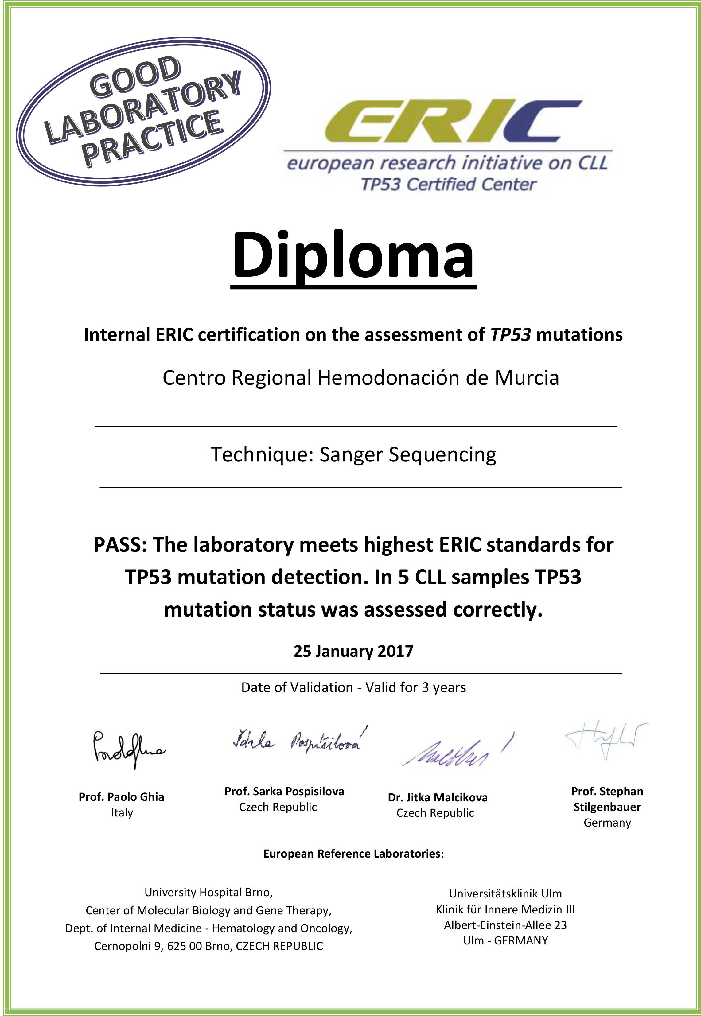 - Cumplimiento de los requerimientos legales y técnico-científicos tanto en materia de Hemodonación y Hemoterapia como en la realización de pruebas de laboratorio, tanto ensayos funcionales como genéticos.