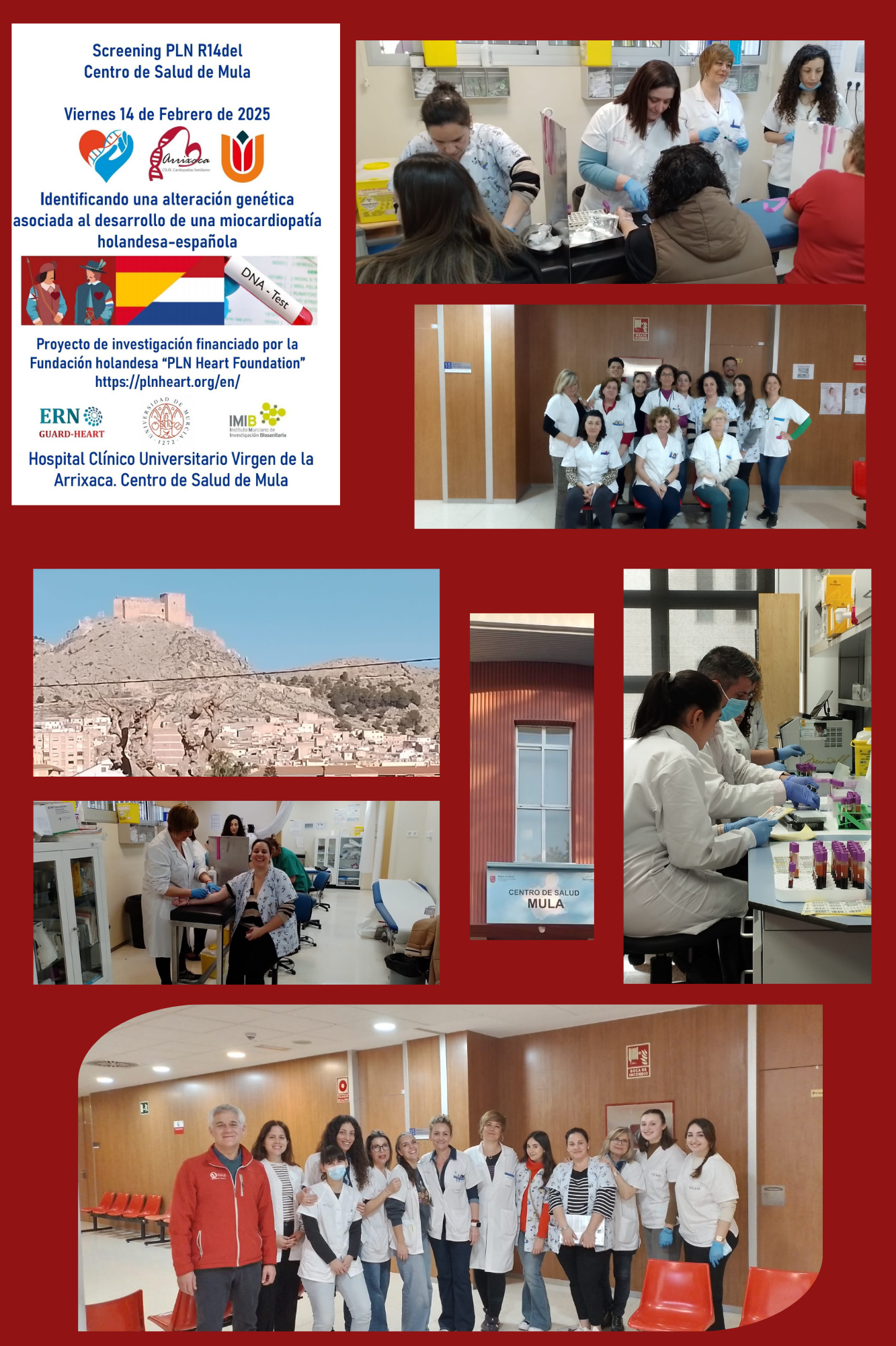 El próximo viernes 14 de febrero, estaremos en el Centro de Salud de Mula realizando un screening de una mutación holandesa y española, que causa una miocardiopatia arritmogenica, con un proyecto financiado por la Fundación holandesa "PLN Heart Foundation".