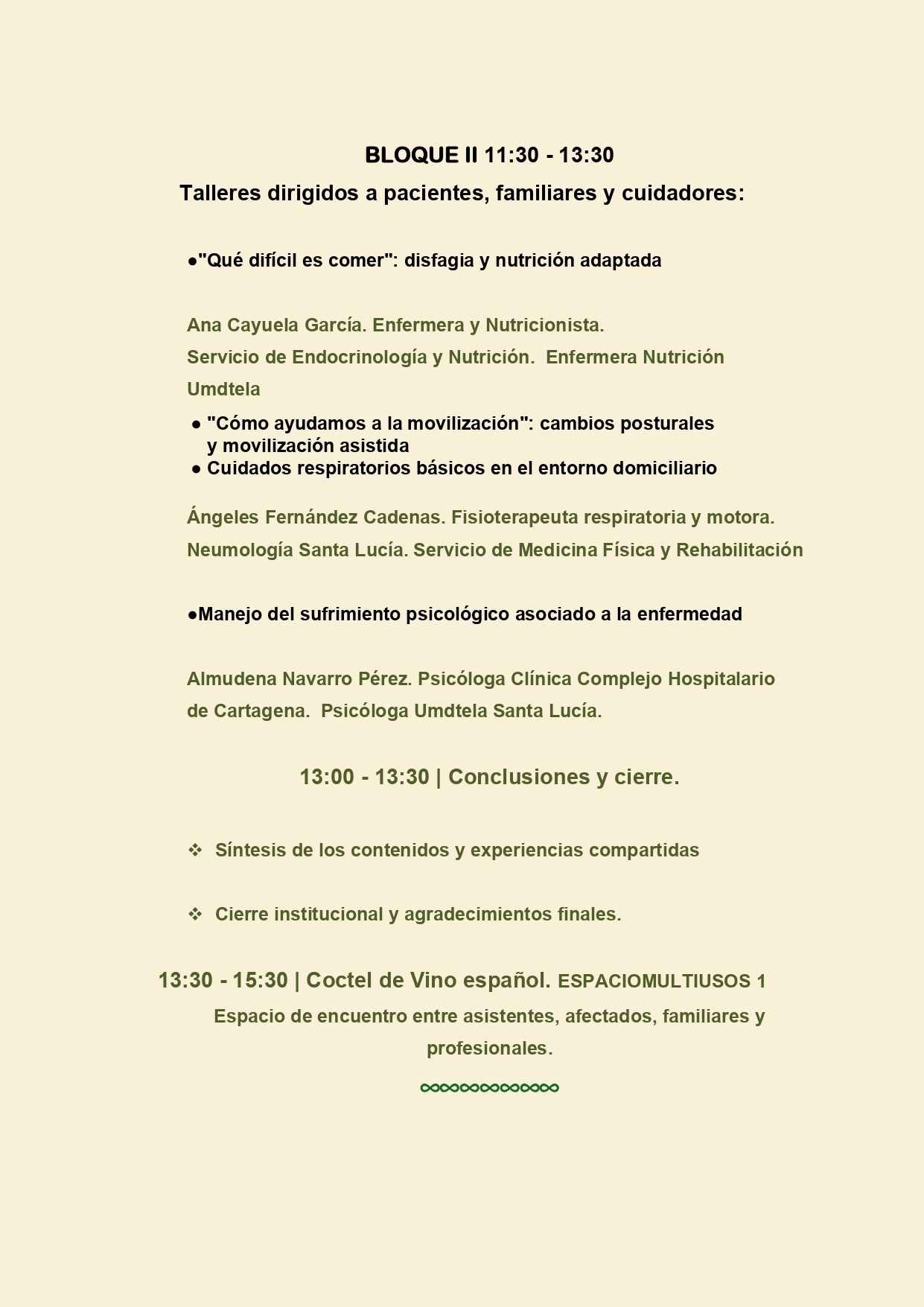 La jornada se completará con una serie de talleres prácticos, que incluirán desde el manejo de la disfagia y los cuidados respiratorios hasta estrategias para afrontar el sufrimiento psicológico, ofreciendo así herramientas útiles para mejorar la calidad de vida de los pacientes y su entorno.