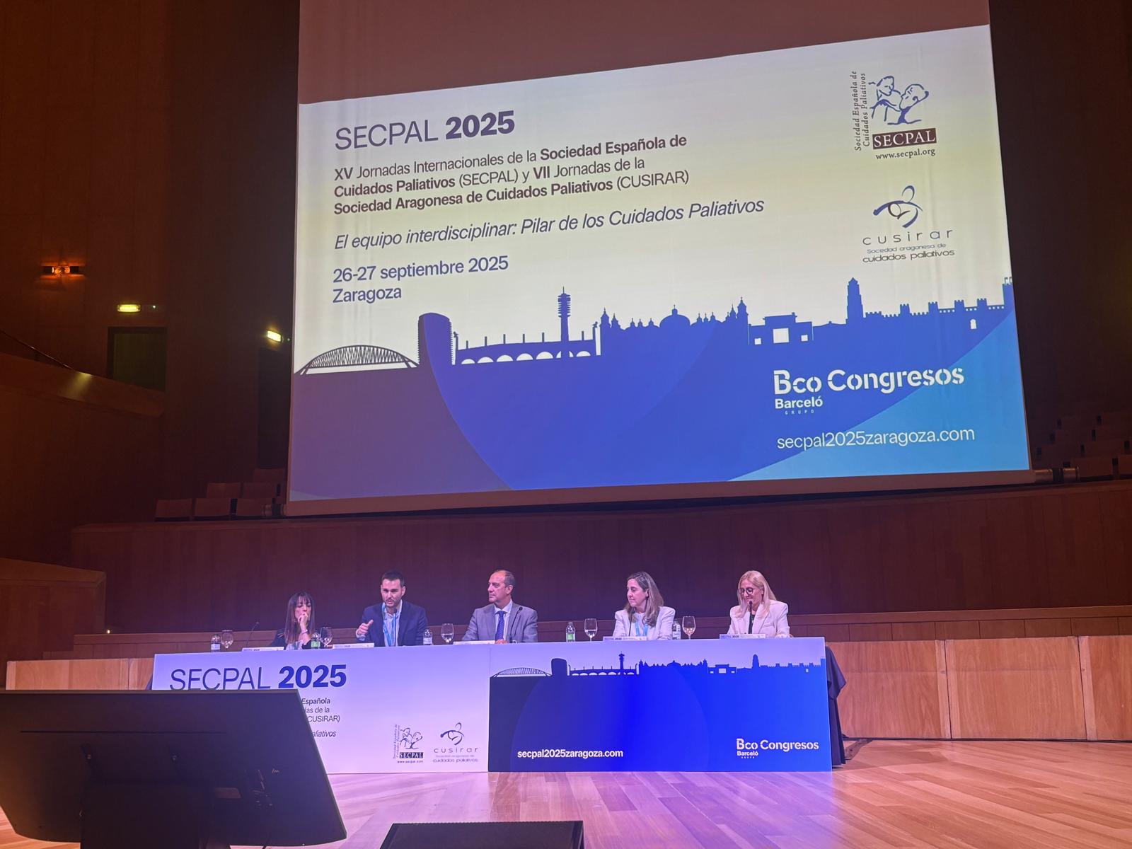 Los días 26 y 27 de septiembre de 2025, Zaragoza acogió las XV Jornadas Internacionales de la Sociedad Española de Cuidados Paliativos (SECPAL) y las VII Jornadas de la Sociedad Aragonesa de Cuidados Paliativos (CUSIRAR), bajo el lema ¿El equipo interdisciplinar: pilar de los Cuidados Paliativos¿. El encuentro reunió a más de 650 profesionales de la medicina, enfermería, trabajo social, psicología, fisioterapia y otras disciplinas, que compartieron experiencias, conocimiento y buenas prácticas para seguir avanzando en la atención integral a las personas con enfermedades avanzadas y sus familias. El programa incluyó conferencias plenarias, mesas de debate, seminarios y comunicaciones científicas que abordaron temas de gran actualidad como la importancia de la compasión y el valor del cuidado, de cómo comunicar mejor qué son los Cuidados Paliativos, de los retos que traen las nuevas tecnologías como la inteligencia artificial o la realidad virtual, del papel de las asociaciones y entidades sociales, y también de temas muy concretos como el dolor en la demencia, la atención en la adolescencia o el impacto del duelo en los propios profesionales. A esta cita acudieron también profesionales de Cuidados Paliativos del Servicio Murciano de Salud (SMS), junto con la Coordinación Regional de Cuidados Paliativos, contribuyendo con su experiencia y mostrando el compromiso de la Región de Murcia con el desarrollo y la innovación en este ámbito. Las jornadas concluyeron con una emotiva conferencia del profesor Harvey Chochinov, referente internacional en dignidad y cuidados al final de la vida, que puso de relieve la esencia del cuidado intensivo centrado en la persona. Además, se anunció que el próximo congreso se celebrará en Murcia, del 8 al 10 de octubre en Cartagena, organizado por la Sociedad Murciana de Cuidados Paliativos (SOMUCPAL).