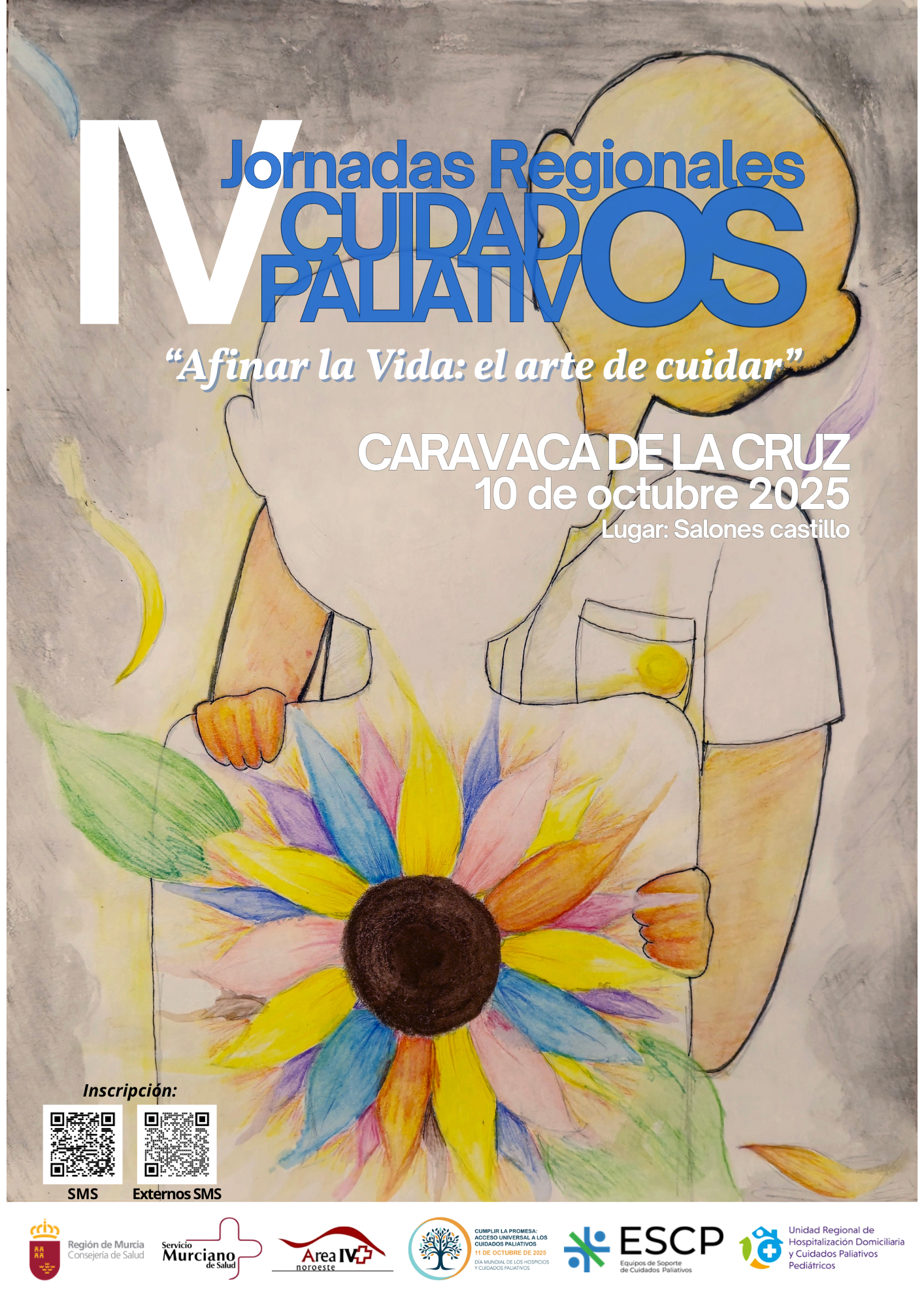 Nos complace presentar el cartel de las IV Jornadas Regionales de Cuidados Paliativos, organizadas con motivo de la conmemoración del Día Mundial de los Cuidados Paliativos, que este año lleva por lema: "Cumplir la promesa: Acceso universal a los Cuidados Paliativos". Desde esta premisa global, nuestras jornadas se desarrollan bajo un tema central que conecta con nuestra identidad y sensibilidad artística: "Afinar la vida: el arte de cuidar", una invitación a detenernos, escuchar y ajustar nuestra mirada profesional y humana en el acompañamiento al final de la vida. Así, la música y el cuidado se entrelazan como lenguajes que armonizan el sufrimiento y dan sentido al acompañamiento. El cartel que ilustra las jornadas de este año, es fruto del trabajo realizado por alumnos de 2º de Bachillerato de Bellas Artes del IES San Juan de la Cruz, en el marco de una propuesta de colaboración con la comunidad educativa. La autora de dicho cartel y ganadora del concurso es la alumna Ana Belén Ibáñez Pérez. Durante estas Jornadas, tendremos la oportunidad de reunir a profesionales de todos los niveles asistenciales, entidades sociales, familias y comunidad, para compartir experiencias, buenas prácticas y reflexiones sobre el presente y el futuro de los cuidados paliativos. La conferencia inaugural será a cargo del Dr. Julio Gómez Cañedo, Licenciado en Medicina y Cirugía, coordinador del Servicio de Cuidados Paliativos del Hospital San Juan de Dios de Santurce. Siendo un referente nacional en la materia, nos acompañará con la conferencia inaugural "Cuidar el viaje, afinarse para acompañar (De guías turísticos a compañeros de viaje)", que marcará el tono de una jornada pensada para escuchar, compartir y transformar. Os animamos a difundir el cartel y a seguir atentos/as a la publicación del programa definitivo. Mientras, os facilitamos los enlaces de inscripción: Profesionales del SMS: IV Jornadas Regionales de Cuidados Paliativos (profesionales) Externos al SMS: IV Jornadas Regionales de Cuidados Paliativos (asociaciones, familiares y pacientes) ¡Os esperamos en Caravaca, para seguir afinando la vida juntos/as!